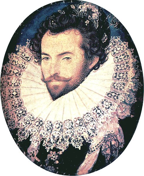 Sir_Walter_Raleigh_oval_portrait_by_Nicholas_Hilliard July 21, 2013 491 × 599 Elizabethan Ruffs Sir Walter Raleigh wears a linen cartwheel ruff with lace edging in 1585